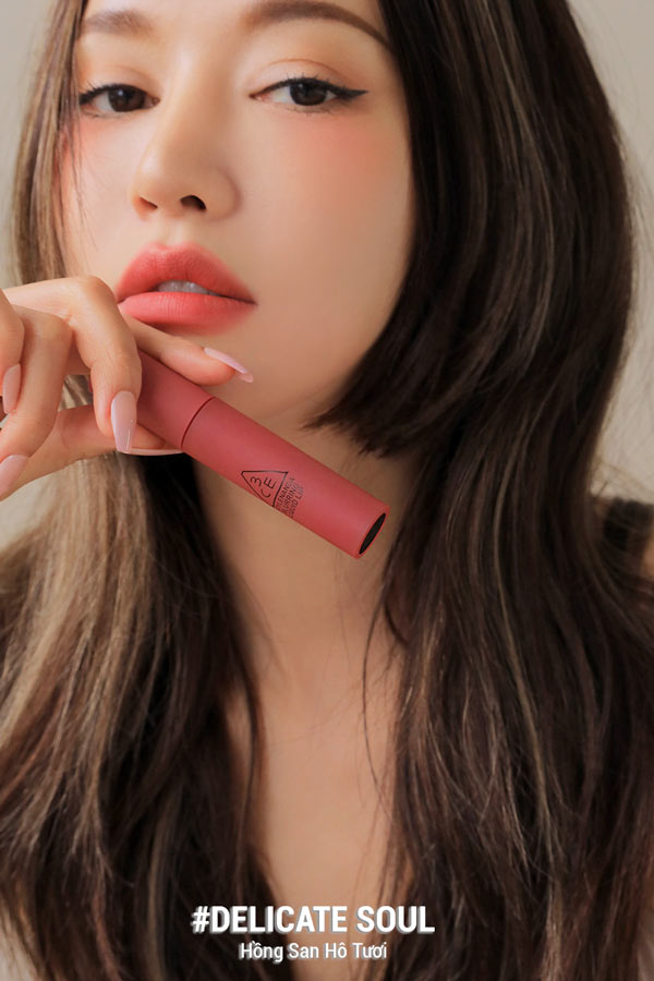 Son 3CE Blurring Liquid Lip Delicate Soul – Màu Hồng San Hô Tươi